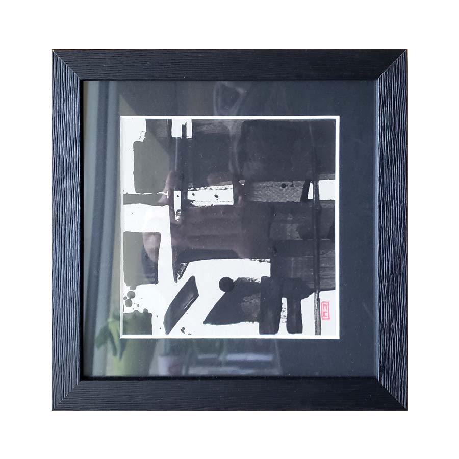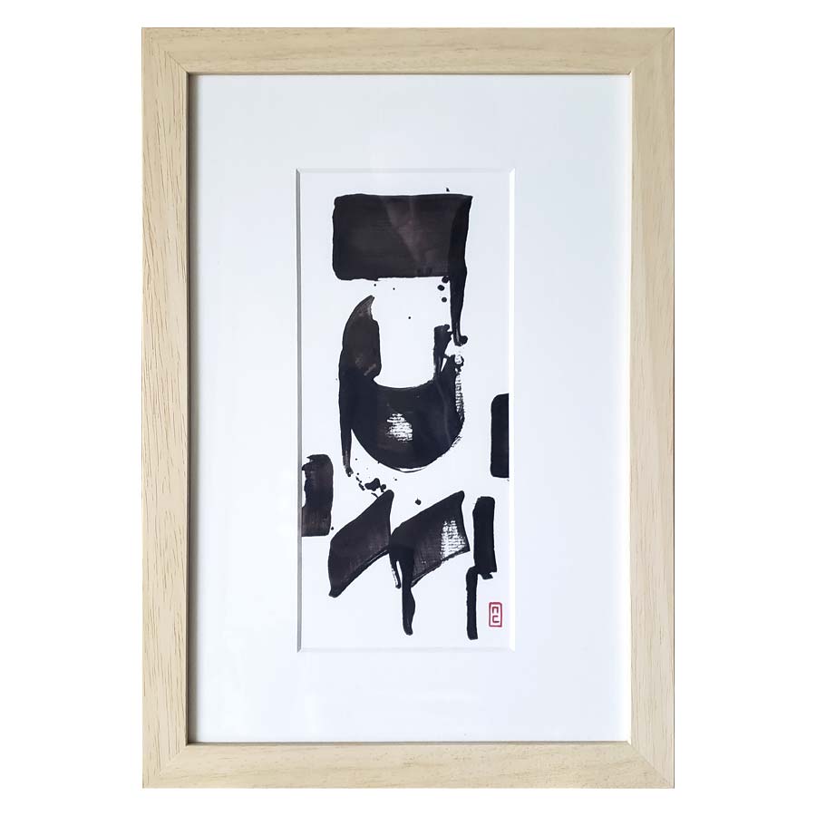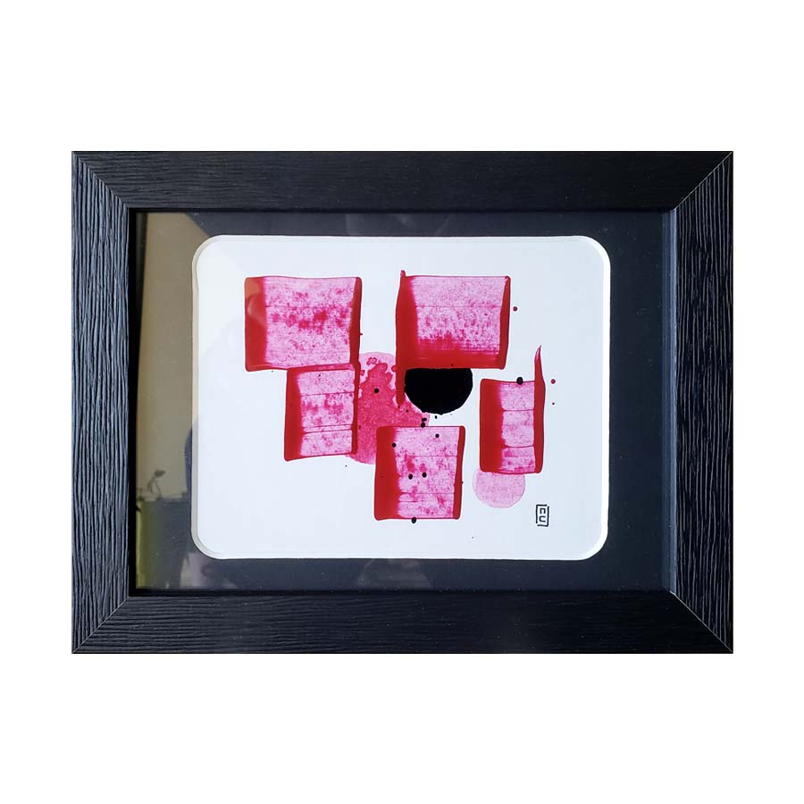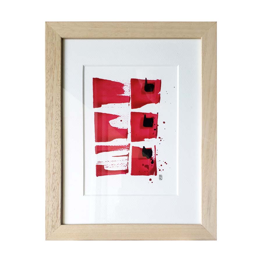 Les créations encadrées (avec un verre) sont enrichis d'un passe-partout, certaines de cadres "vitrine" avec réhausse 1 ou 3cm. Les créations sont peintes sur contrecollé 2 mm. Techniques : encre de Chine, encre acrylique, peinture acrylique et vinylique.