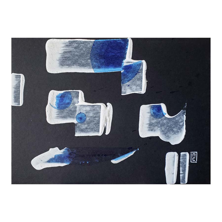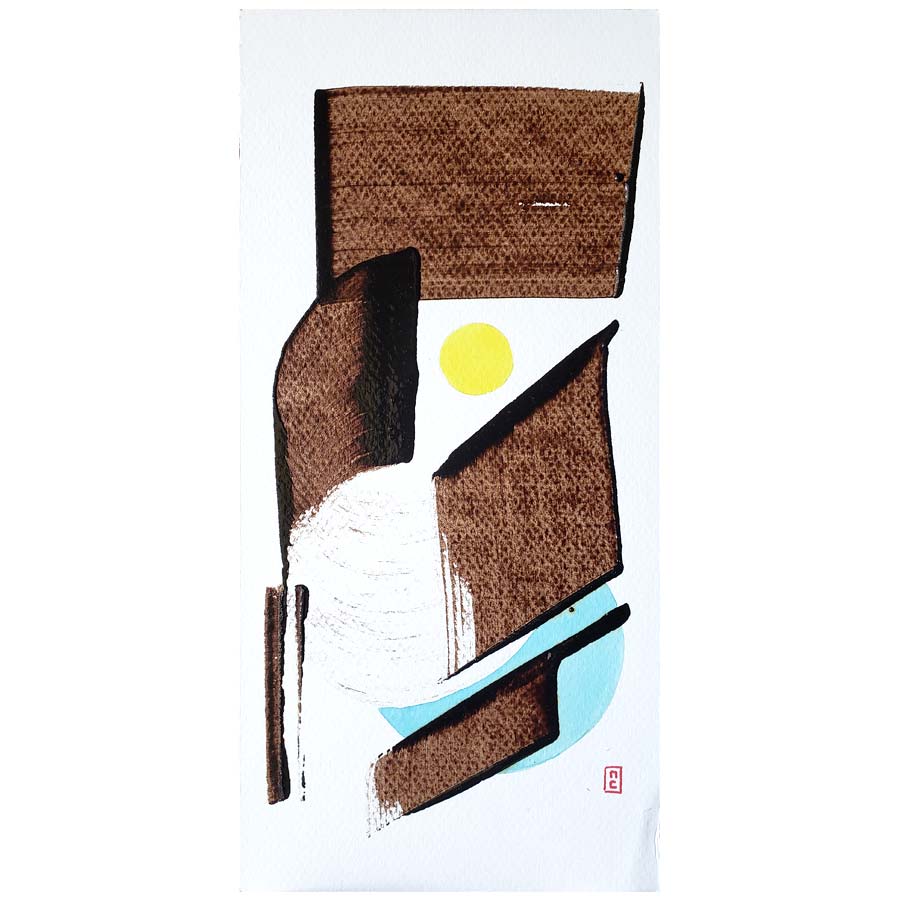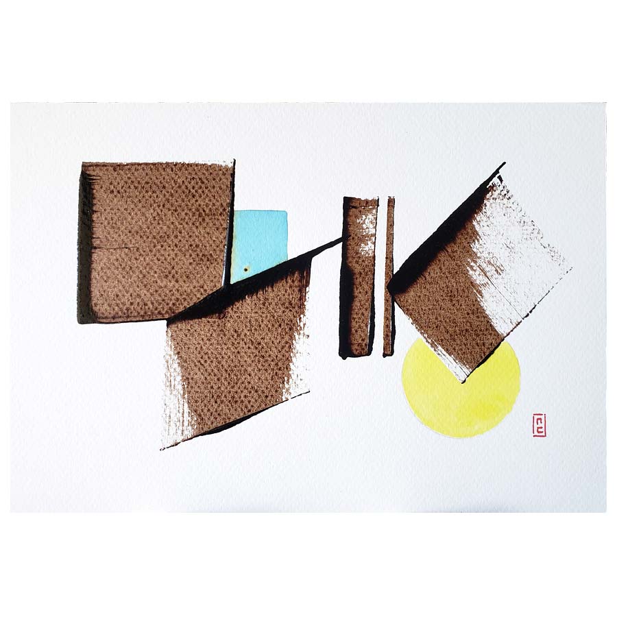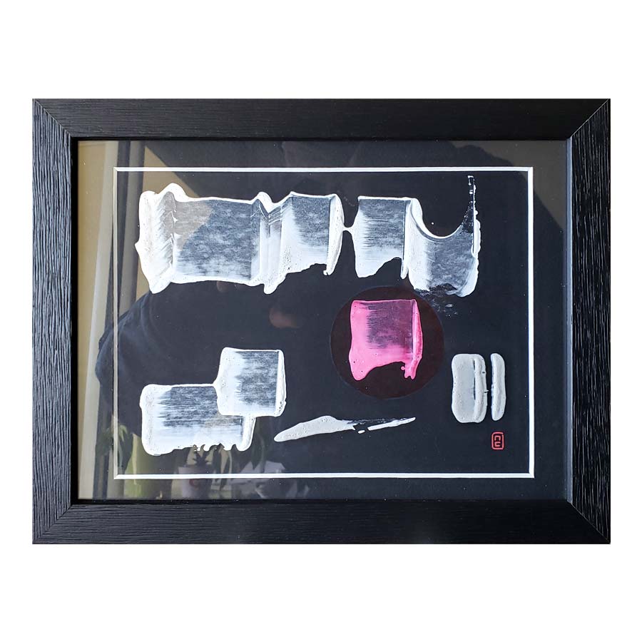 Les créations encadrées (avec un verre) sont enrichis d'un passe-partout, certaines de cadres "vitrine" avec réhausse 1 ou 3cm. Les créations sont peintes sur contrecollé 2 mm. Techniques : encre de Chine, encre acrylique, peinture acrylique et vinylique.
